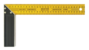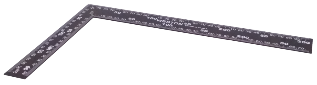 ESCUADRA CARPINTERO. Mango de aluminio, hoja de acero pintada epoxi milimetrada..