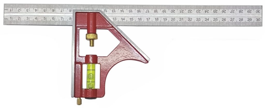ESCUADRA MOVIL. Mango de aluminio, hoja milimetrada. Gota nivel + punzón.