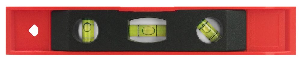 Nivel fabricado en Alto Impacto resistente a torceduras de 23 cm de largo, con 3 gotas luminosas protegidas de golpes. Base magnética